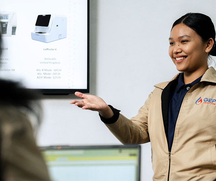 GEPP Lab Solutions, Inc. (established in 2011 as GEPP Trading and entered the diagnostic industry in ) is a growing corporation formed to share its resources and expertise to address the various demands and provide solutions to the changing needs of the diagnostic industry in the Philippines, by providing leading-edge technology supported by a trained support and service unit. The main activity of GEPP is the distribution of various analyzers and reagents to hospitals or clinics with laboratory functions.